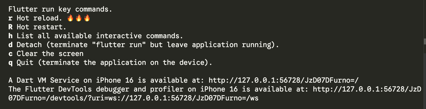 App run နေတဲ့အချိန် terminal မှာ အခုလိုမျိုး မြင်နေရမှာပဲ ဖြစ်ပါတယ်။
