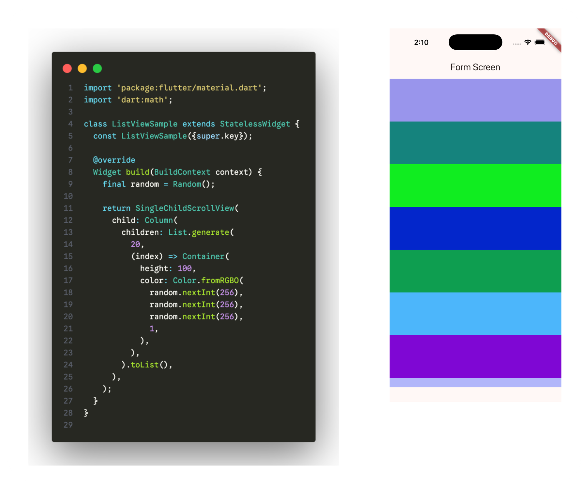 ဒီမှာ ကြည့်မယ်ဆို SingleChildScrollView က နားလည်ရလွယ်ပြီးတော့ ရှင်းလဲ ရှင်းပါတယ်။ Widget ကို SingleChildScrollView နဲ့ wrap လုပ်လိုက်တာနဲ့ scroll လို့ ရသွားတာမျိုးကို တွေ့ရမှာပါ။ ဒီတော့ ဘာကြောင့် အမြဲမသုံးသင့်တာလဲဆိုတာ ဆက်ကြည့်လိုက်ရအောင်ပါ။