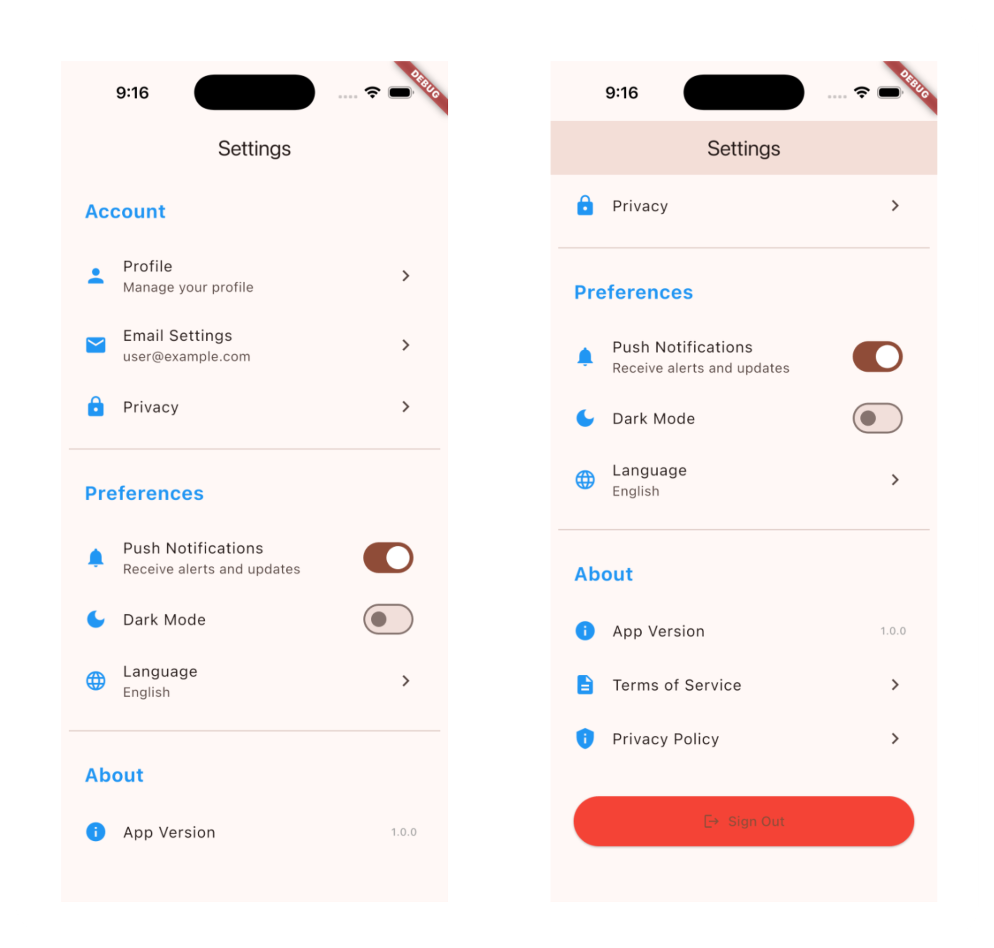 ဒီတော့ SingleChildScrollView ကို ဘယ်တော့မှ မသုံးရဘူးလား ဆိုတော့ သူ့ကို အသုံးပြုလို့ အဆင်ပြေတဲ့နေရာတွေလဲ ရှိပါတယ်။ သူ့ကို child widget တွေ အရမ်းအများကြီး မပါတဲ့ Form လိုမျိုးမှာ အသုံးပြုသင့်ပါတယ်။ လွယ်လွယ်ကူကူနဲ့ widget အနည်းငယ်သာပါတဲ့ Column အတွက်ဆို အသုံးပြုရ အဆင်ပြေပါတယ်။
