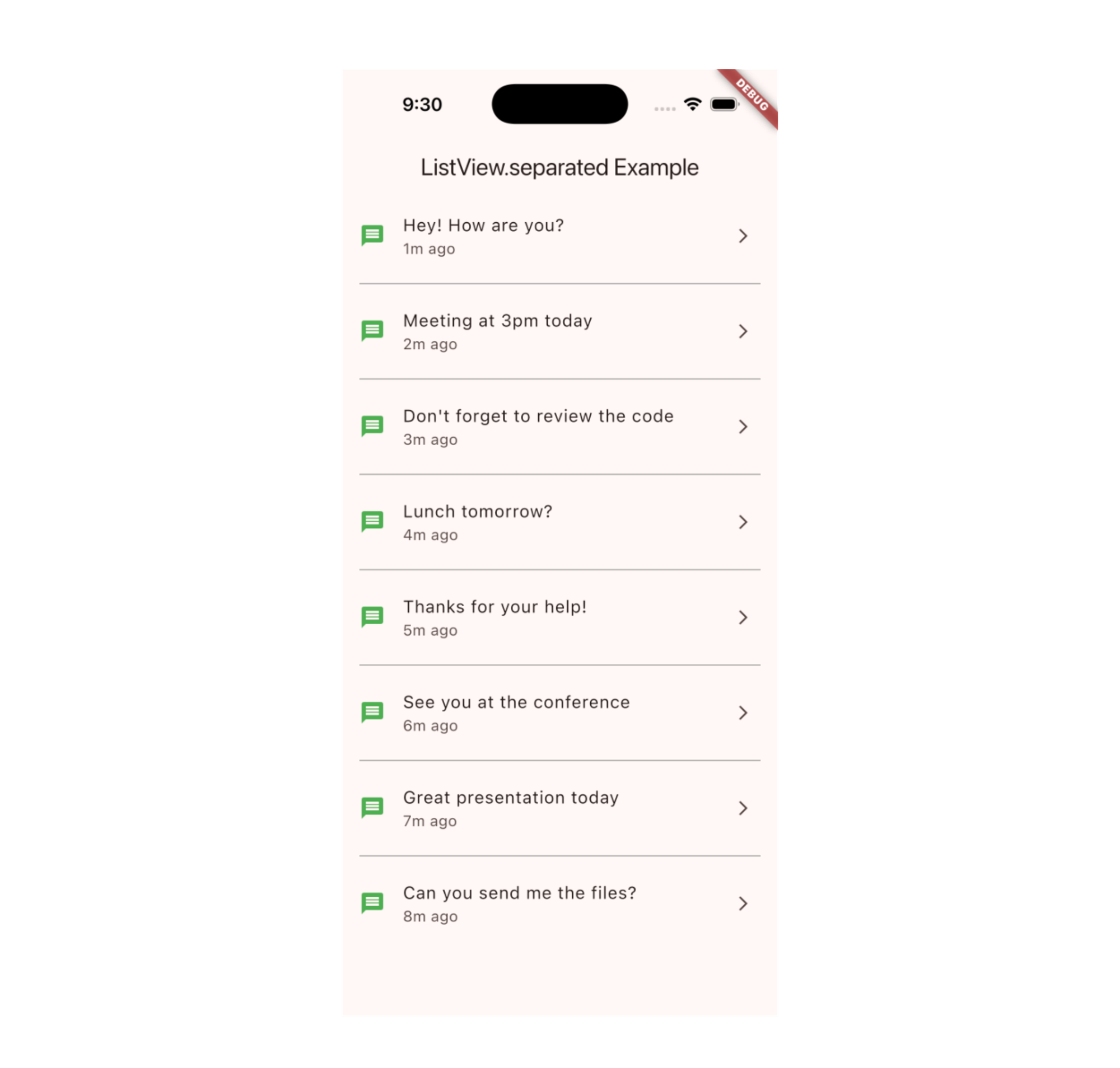 appBar: AppBar(title: Text('ListView.separated Example')),